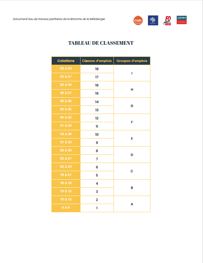 CCN MÉTALLURGIE – COTATION DES EMPLOIS